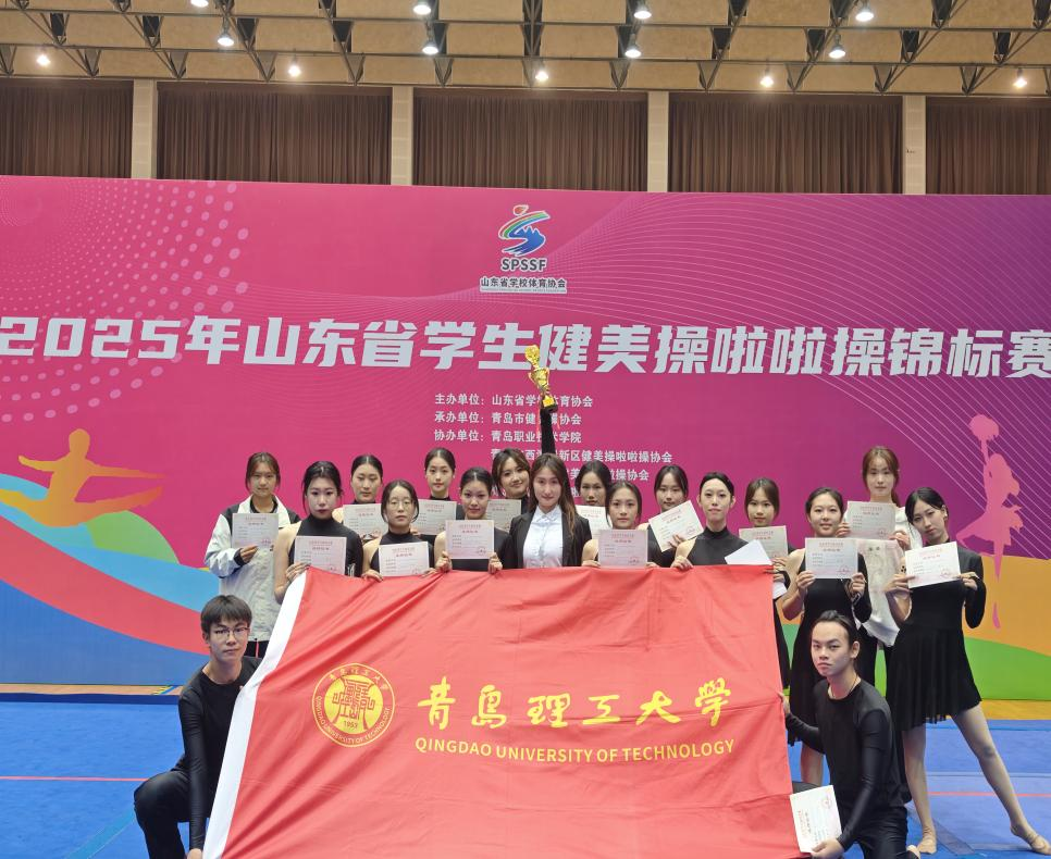 2025年10月24日—26日,山东省学生健美操、啦啦操锦标赛在青岛职业技术学院举行,我集团由来自机械与汽车工程学院、信息与控制工程学院、商学院、管理工程学院、环境与市政工程学院、土木工程学院、人文与外国语学院7个学院的17名学生组队参加,摘得集体爵士啦啦操自选的冠军!同时,学校荣获“道德风尚奖”,辛琪教练被评为“优秀教练员”。